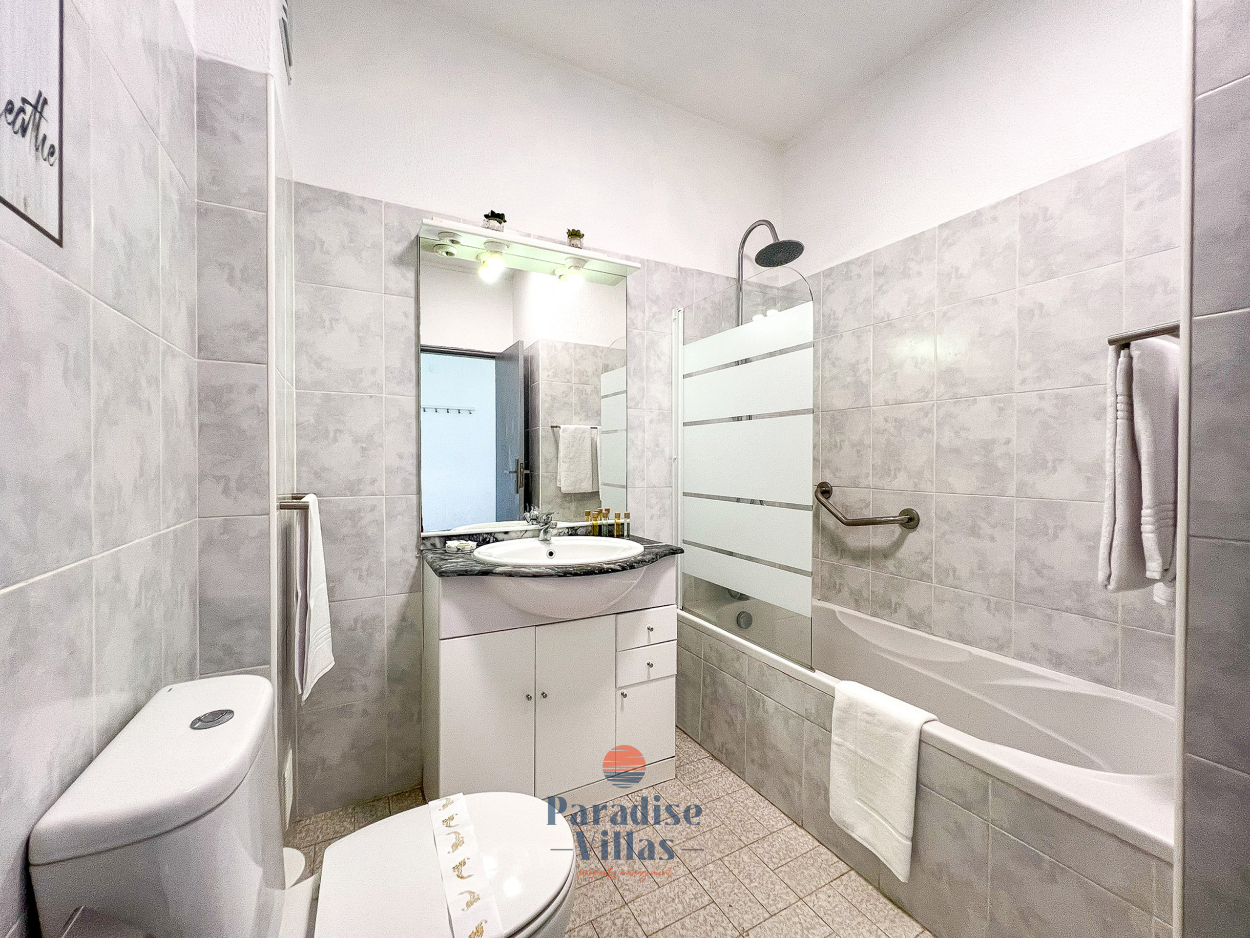 O apartamento oferece dois quartos duplos com roupeiros embutidos, um dos quais beneficia de uma casa de banho privativa, garantindo maior privacidade. No total, existem duas casas de banho modernas, ambas com chuveiros de acesso direto.
