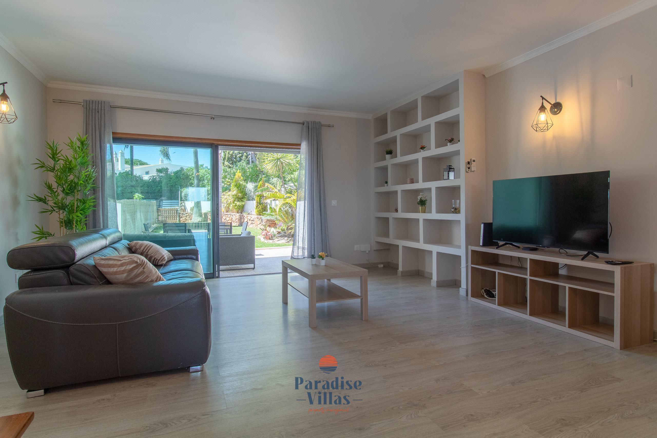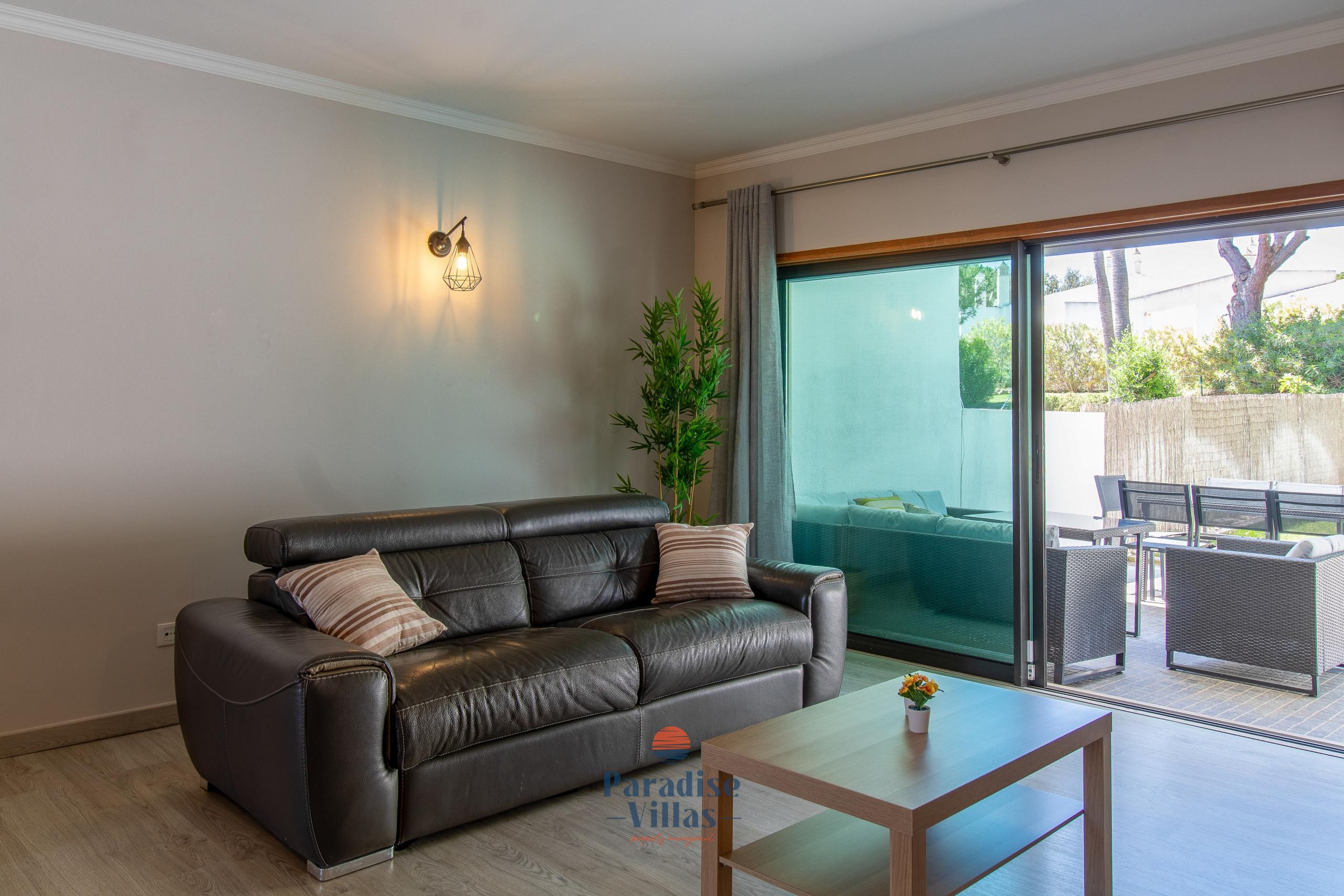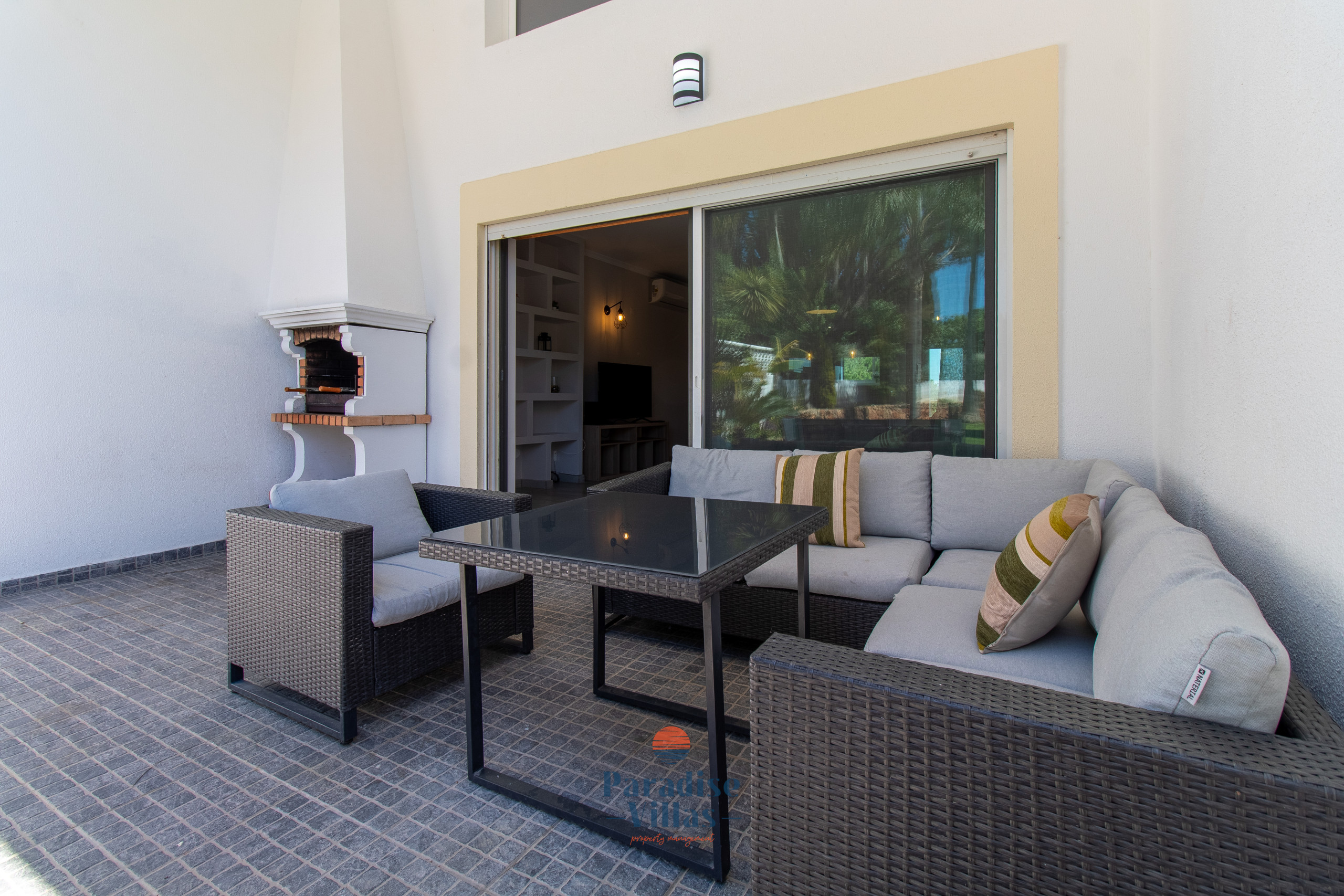 Lá fora, os hóspedes podem desfrutar de uma área de jardim privada com BBQ, mesa de refeições ao ar livre e um espaço de lounge confortável — ideal para momentos relaxantes em família após um dia na praia ou na piscina.