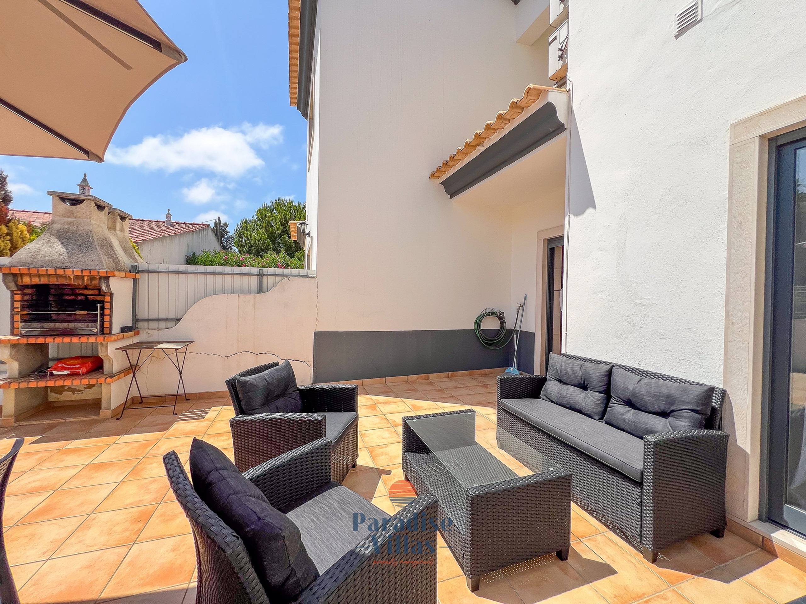 No exterior, os convidados podem desfrutar de um pátio exterior privado com um tradicional churrasco de carvão algarvio, perfeito para refeições ao ar livre e serões relaxados.