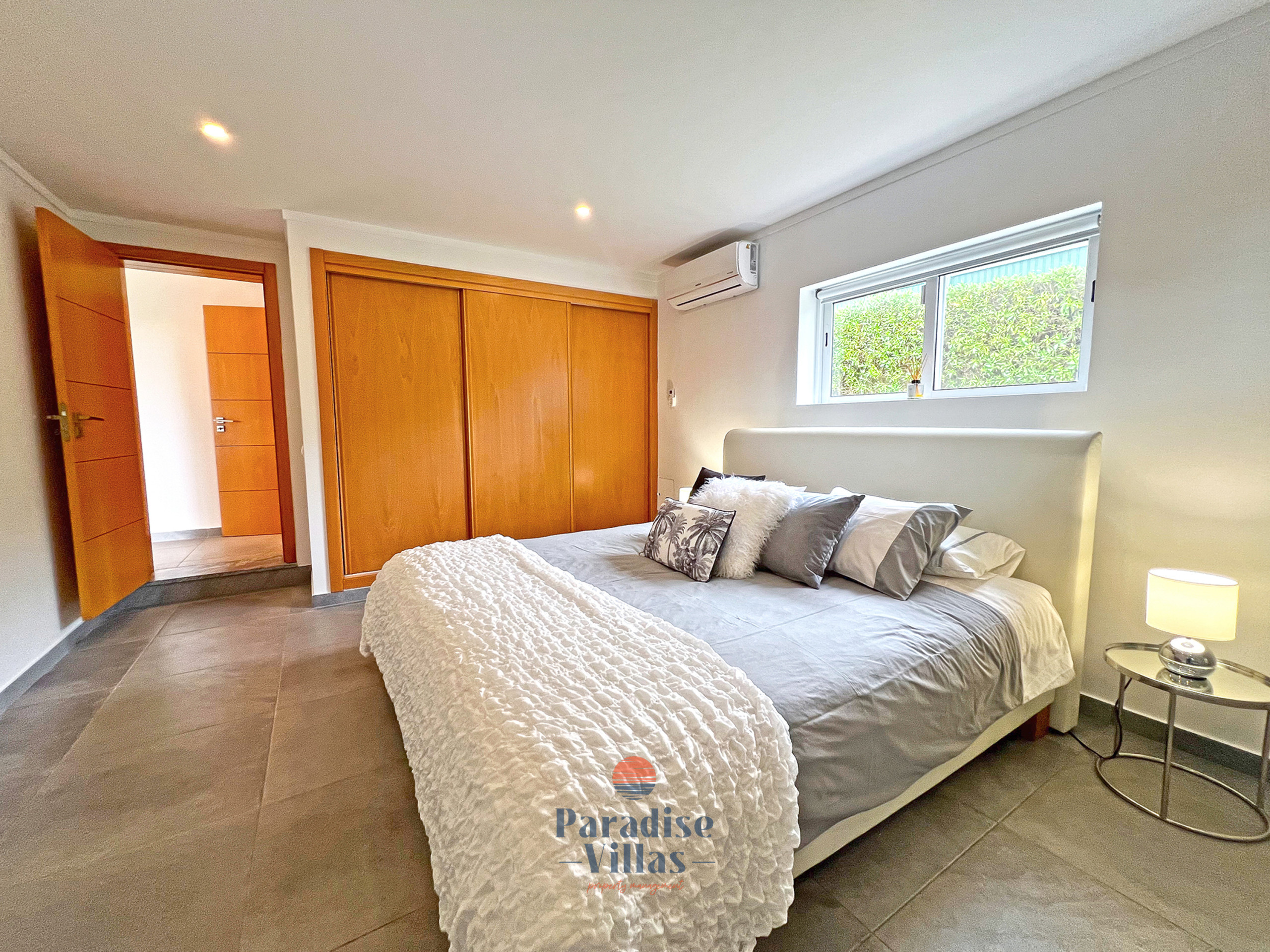 Esta villa belamente decorada possui quatro quartos espaçosos: três com camas de casal e um com duas camas individuais, todos com casa de banho privativa. Um dos quartos está localizado num anexo separado, proporcionando privacidade adicional.