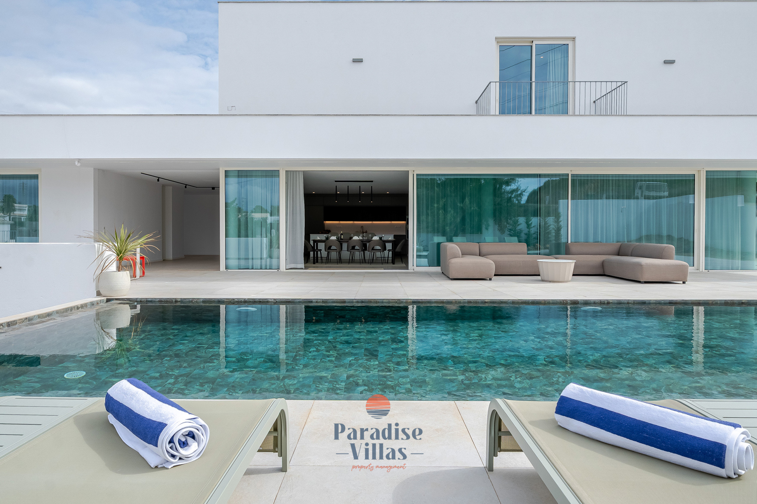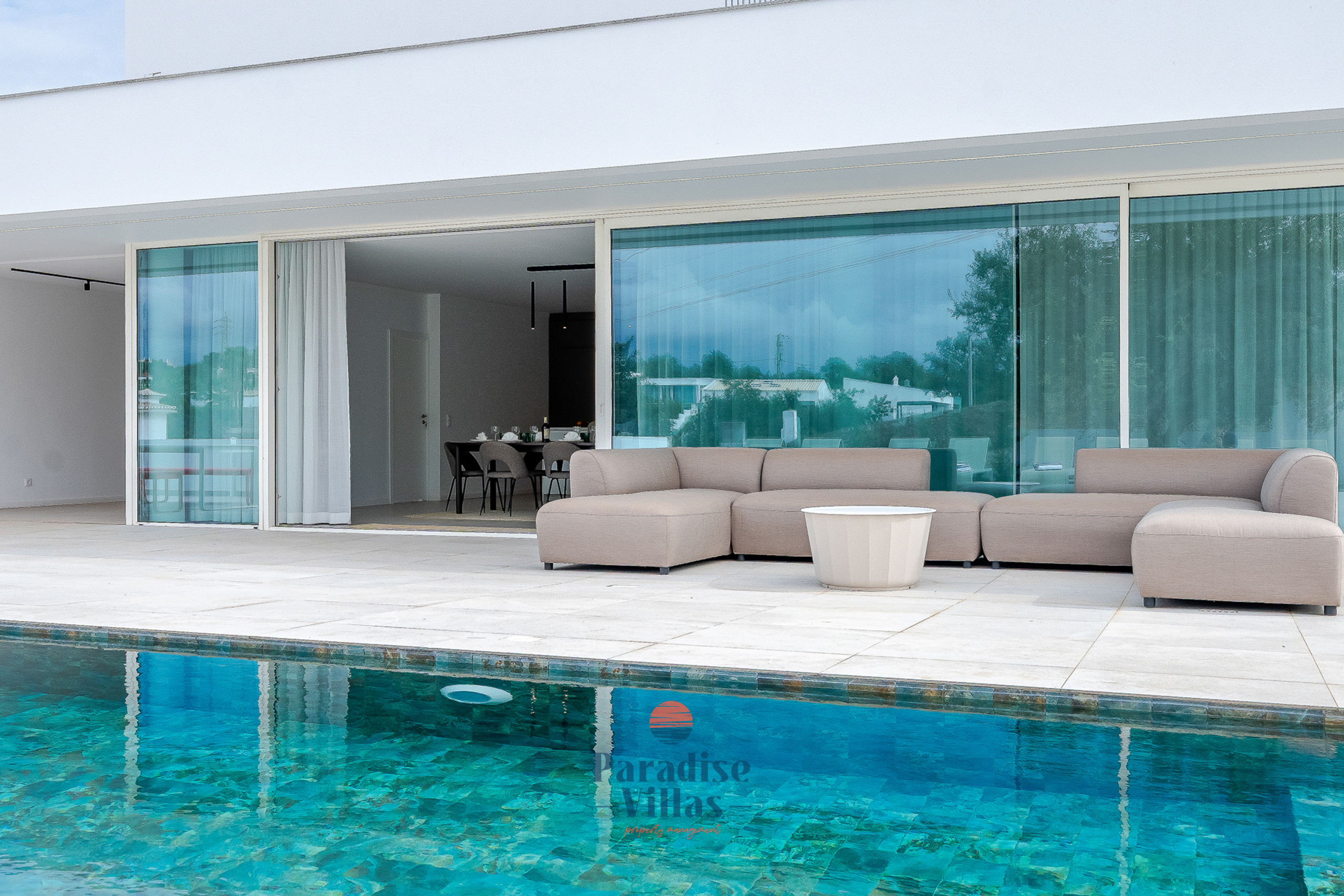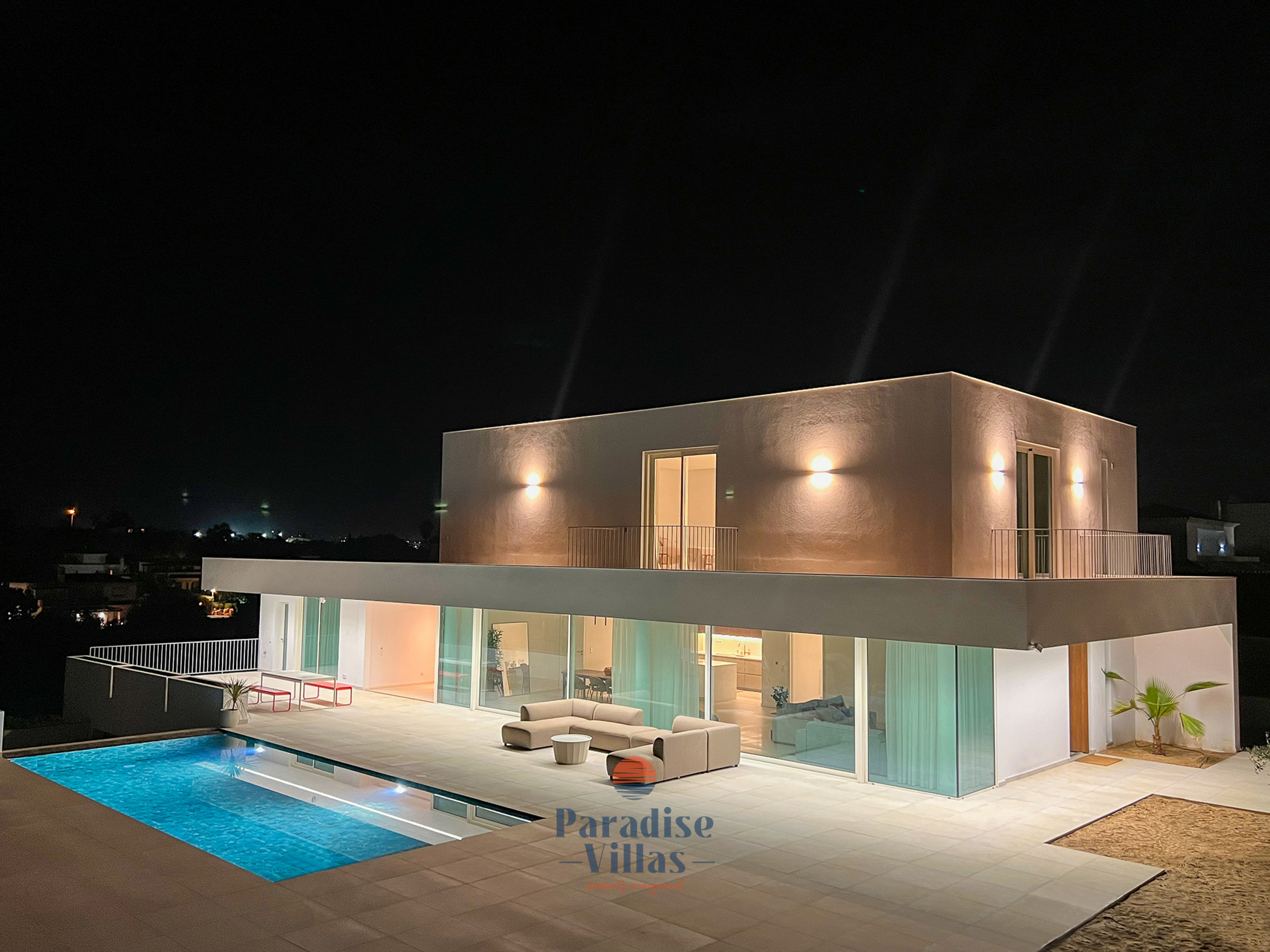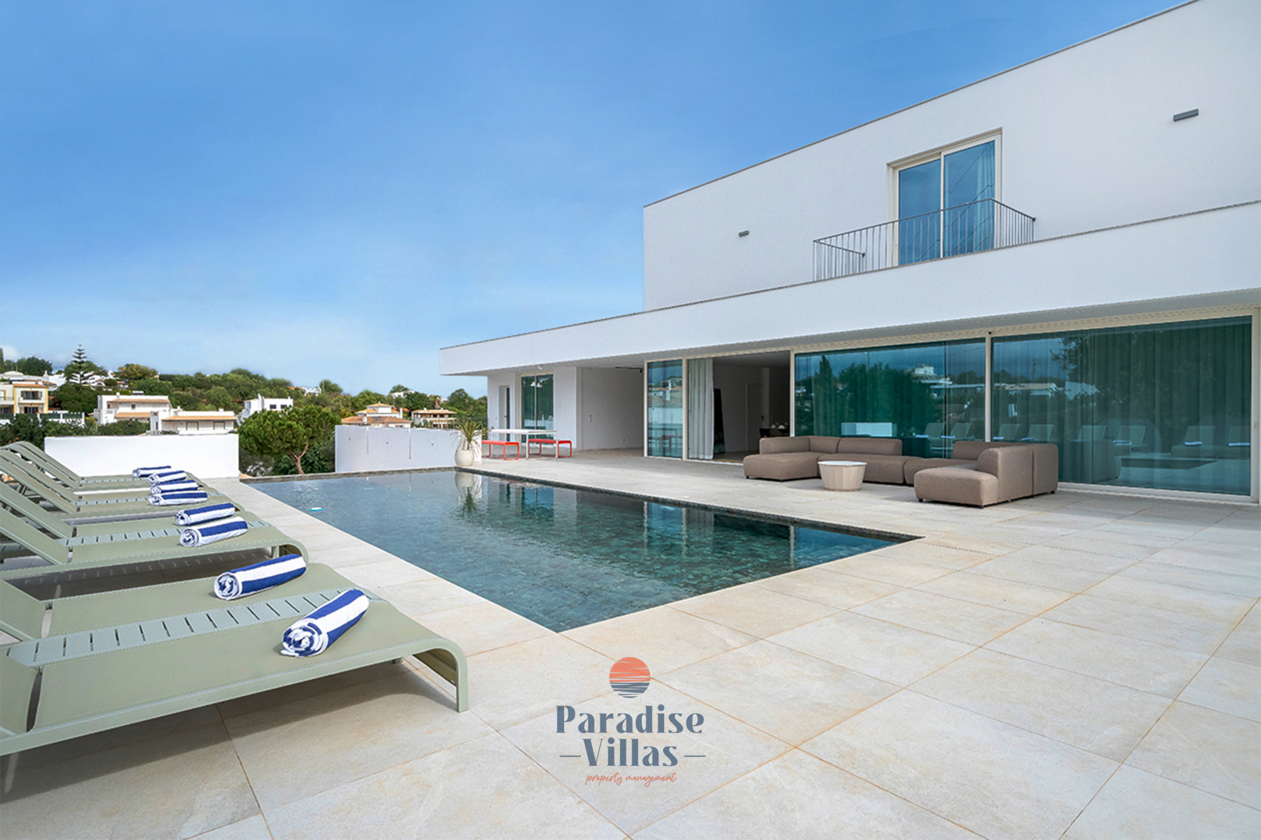 Esta moradia de luxo completamente nova com 4 quartos em Albufeira combina na perfeição arquitetura moderna, design minimalista e abundante luz natural.