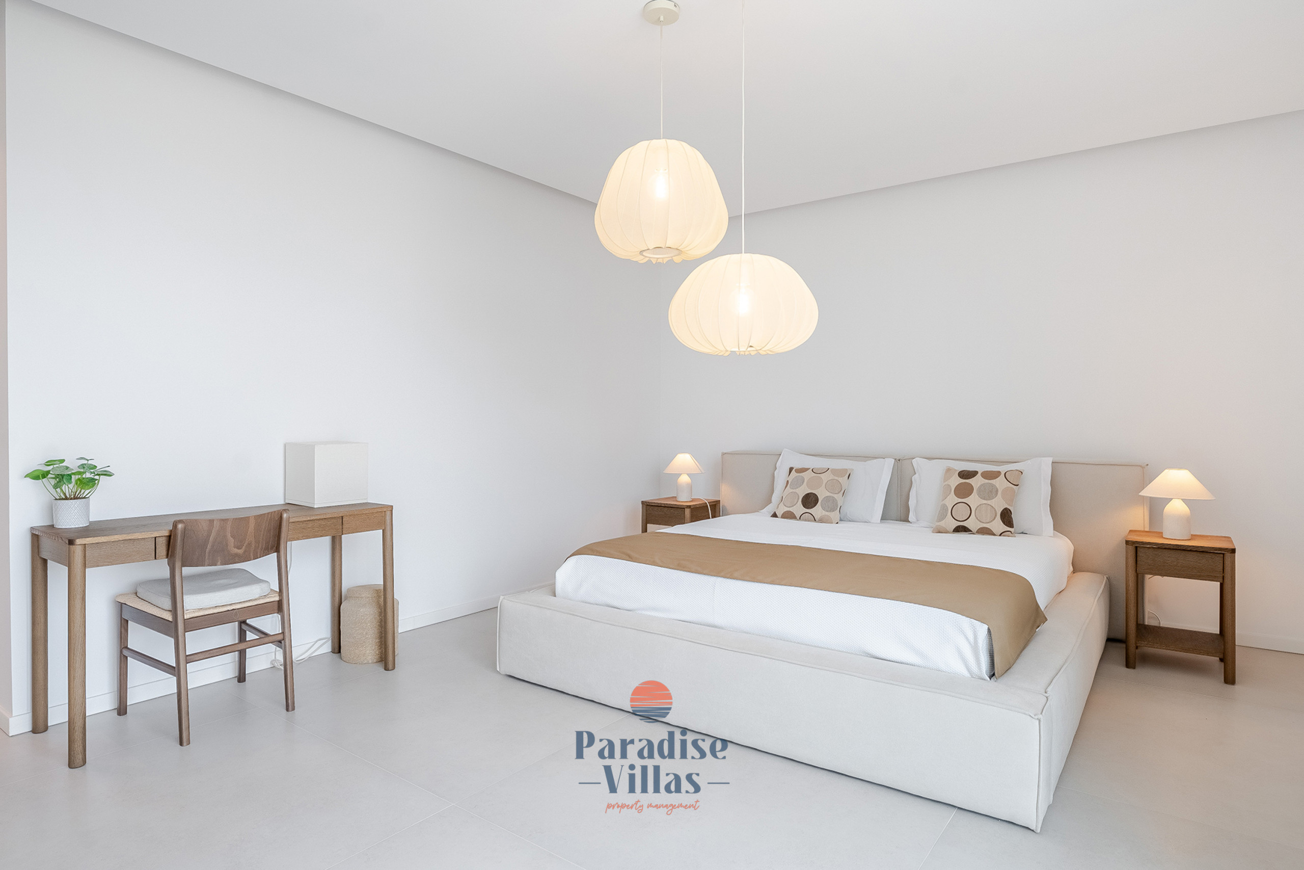 1 quarto duplo com casa de banho privativa, cama de casal, vista para a piscina e acesso direto ao terraço;