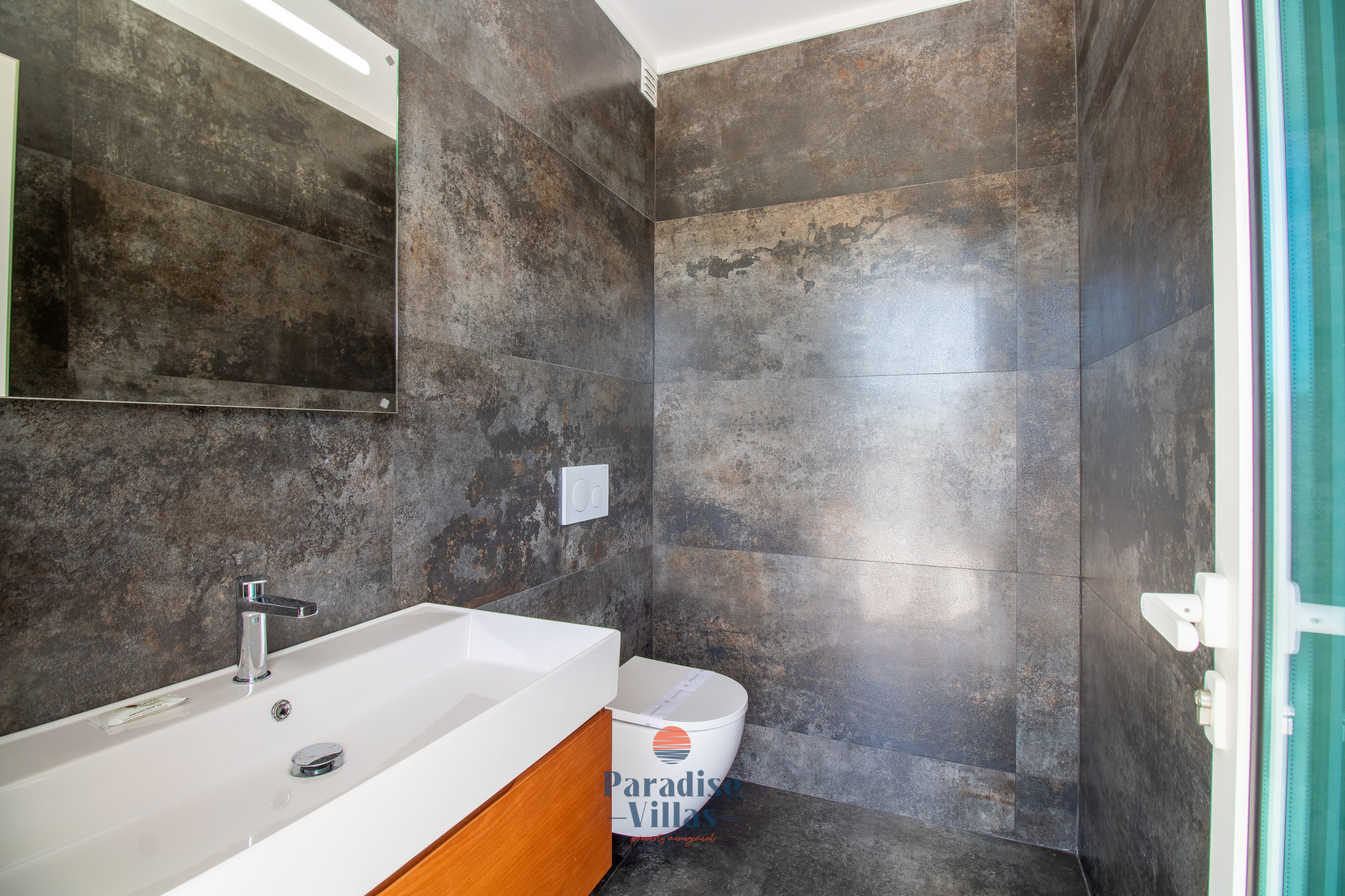 Existe também uma casa de banho de hóspedes no rés-do-chão e uma casa de banho exterior para maior conforto ao passar tempo junto à piscina.