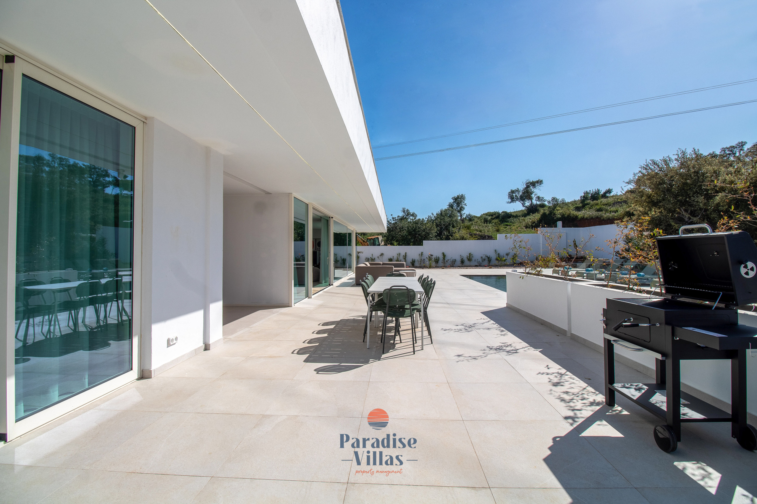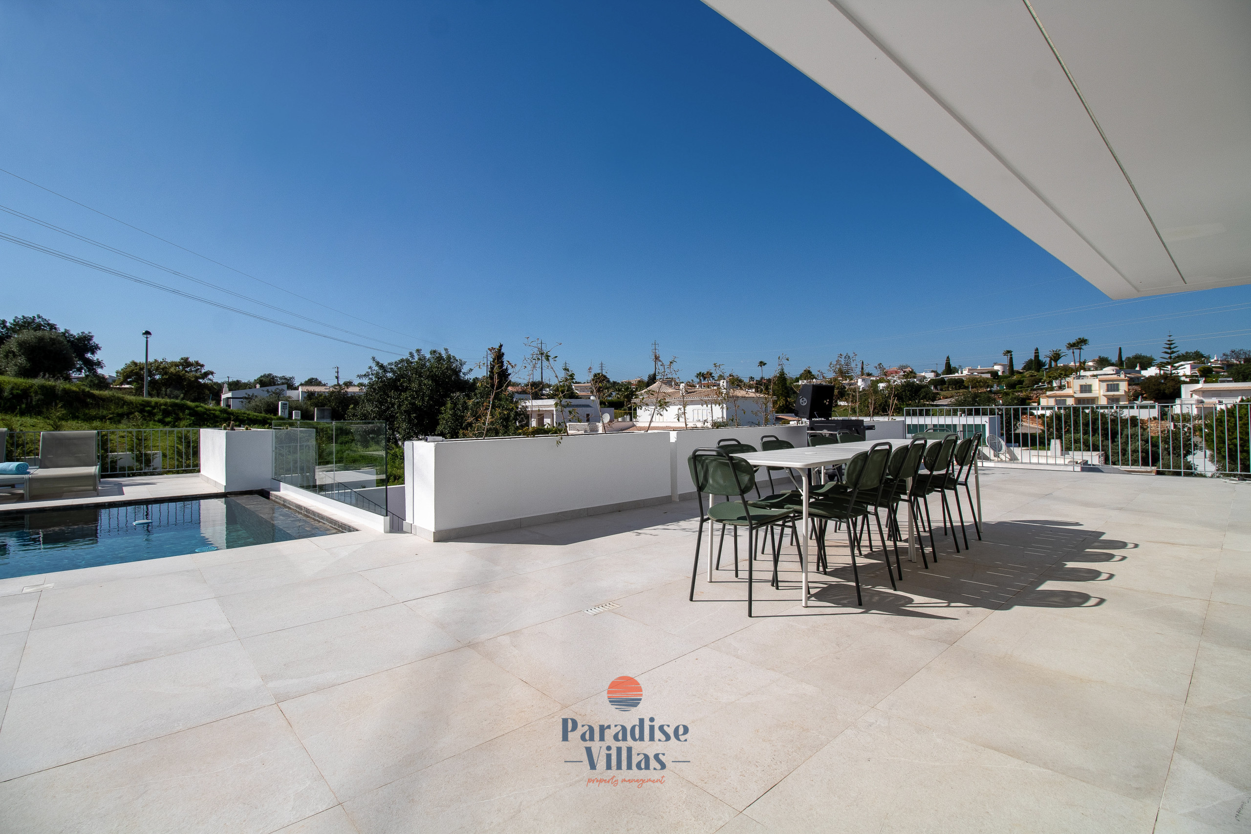 Desfrute da sua piscina infinita privada rodeada por espreguiçadeiras, assentos de descanso, uma área de refeições ao ar livre e um churrasco a carvão — o espaço perfeito para relaxar ou receber convidados sob o sol do Algarve.