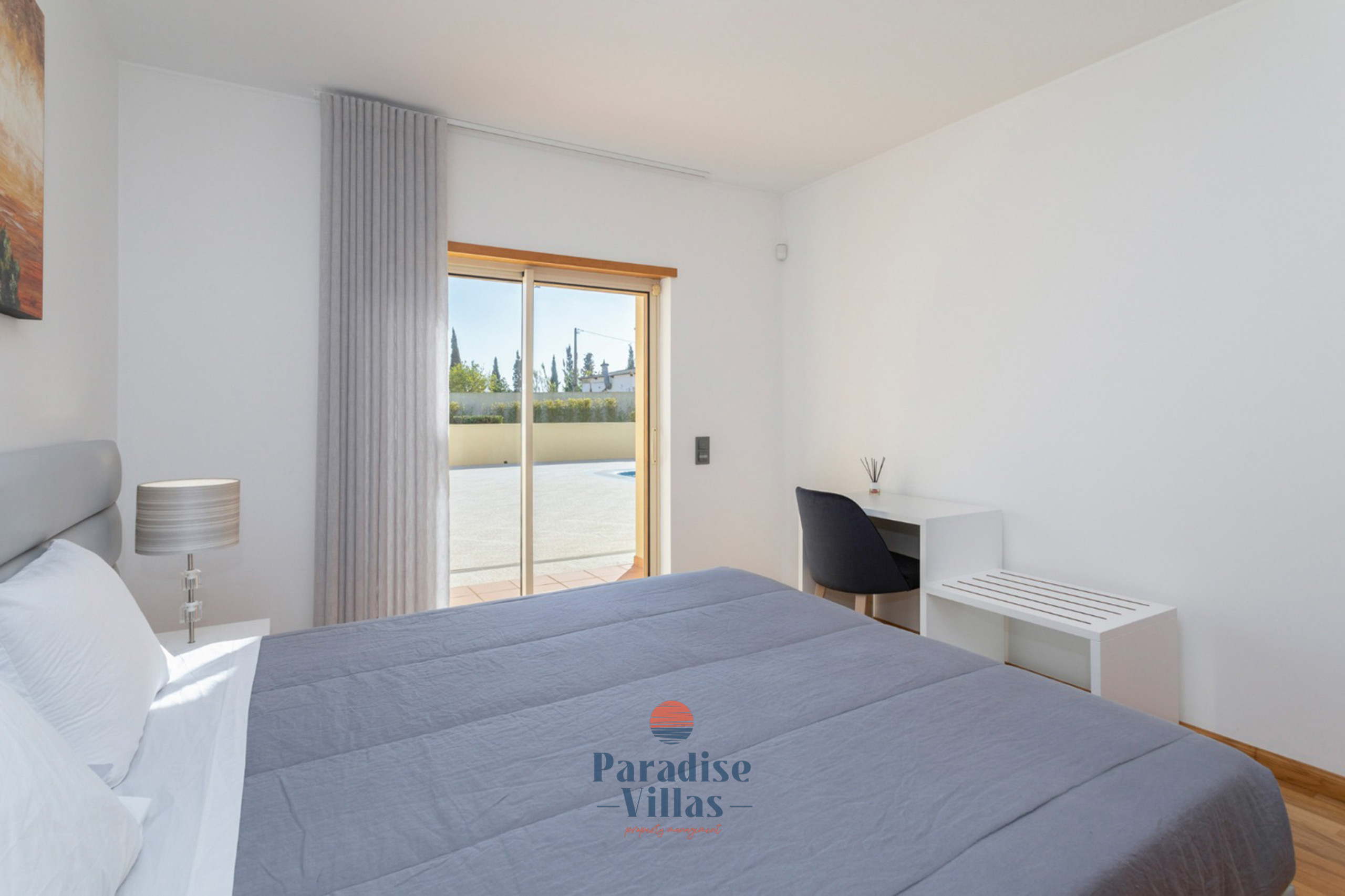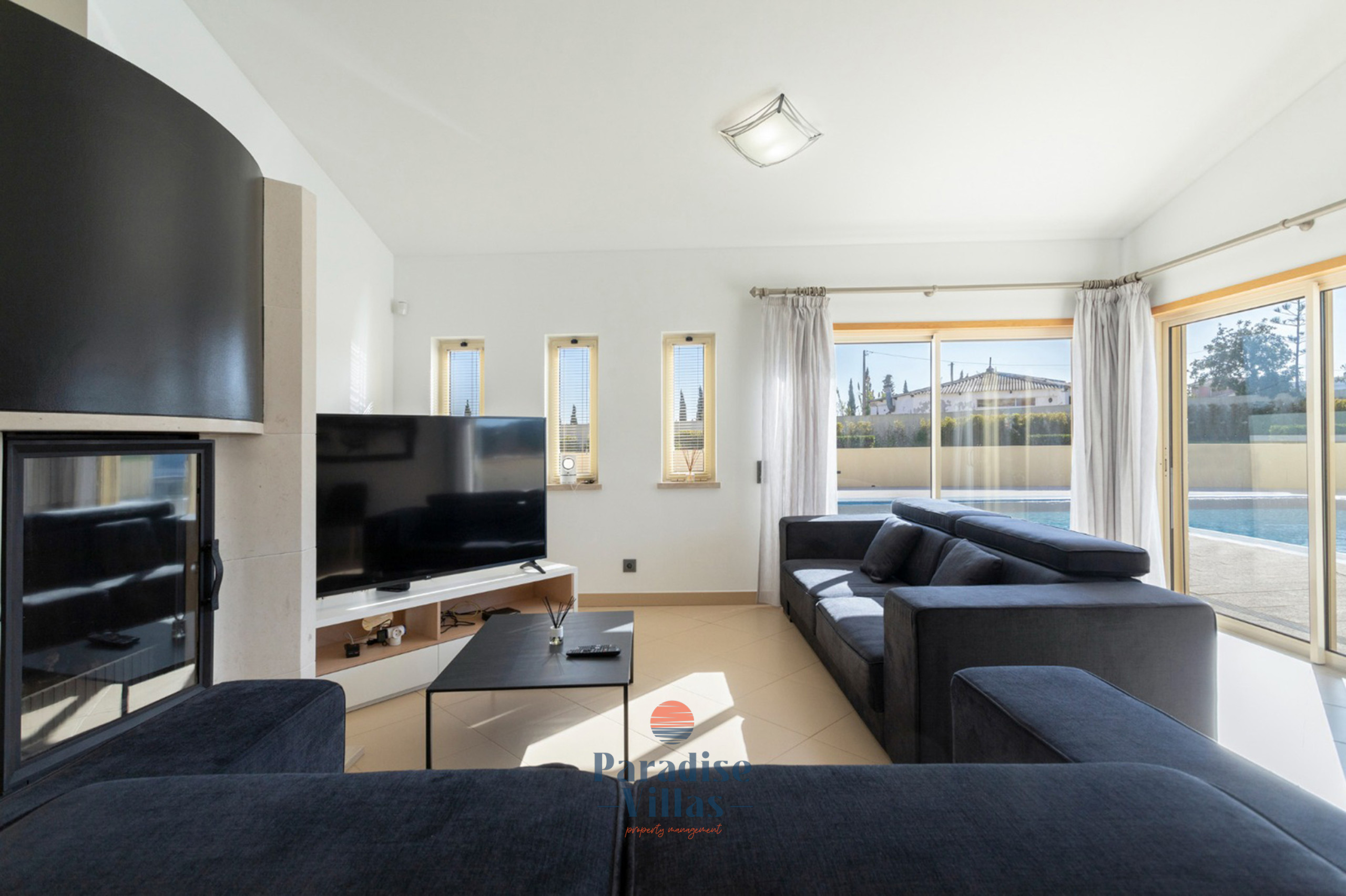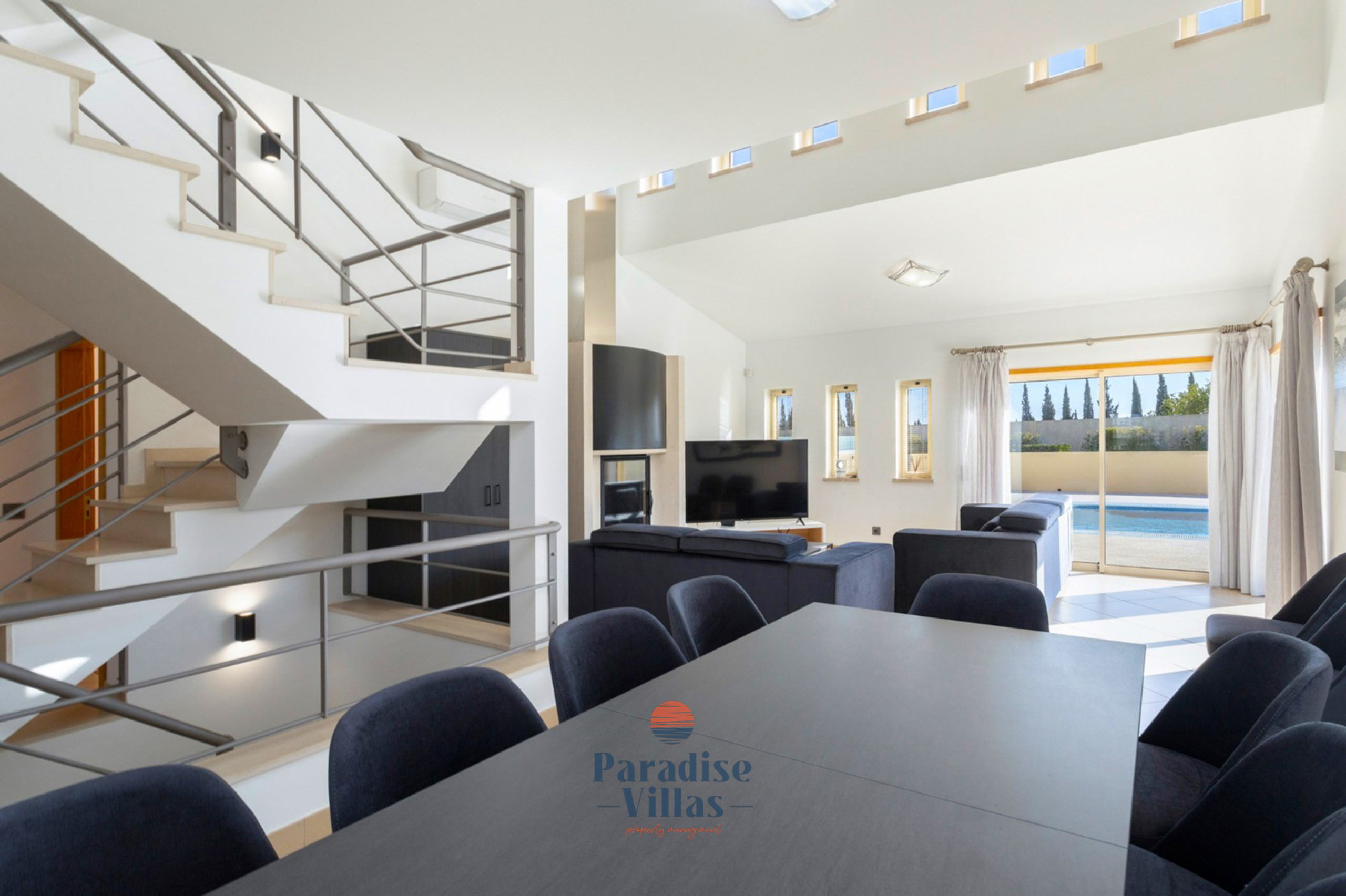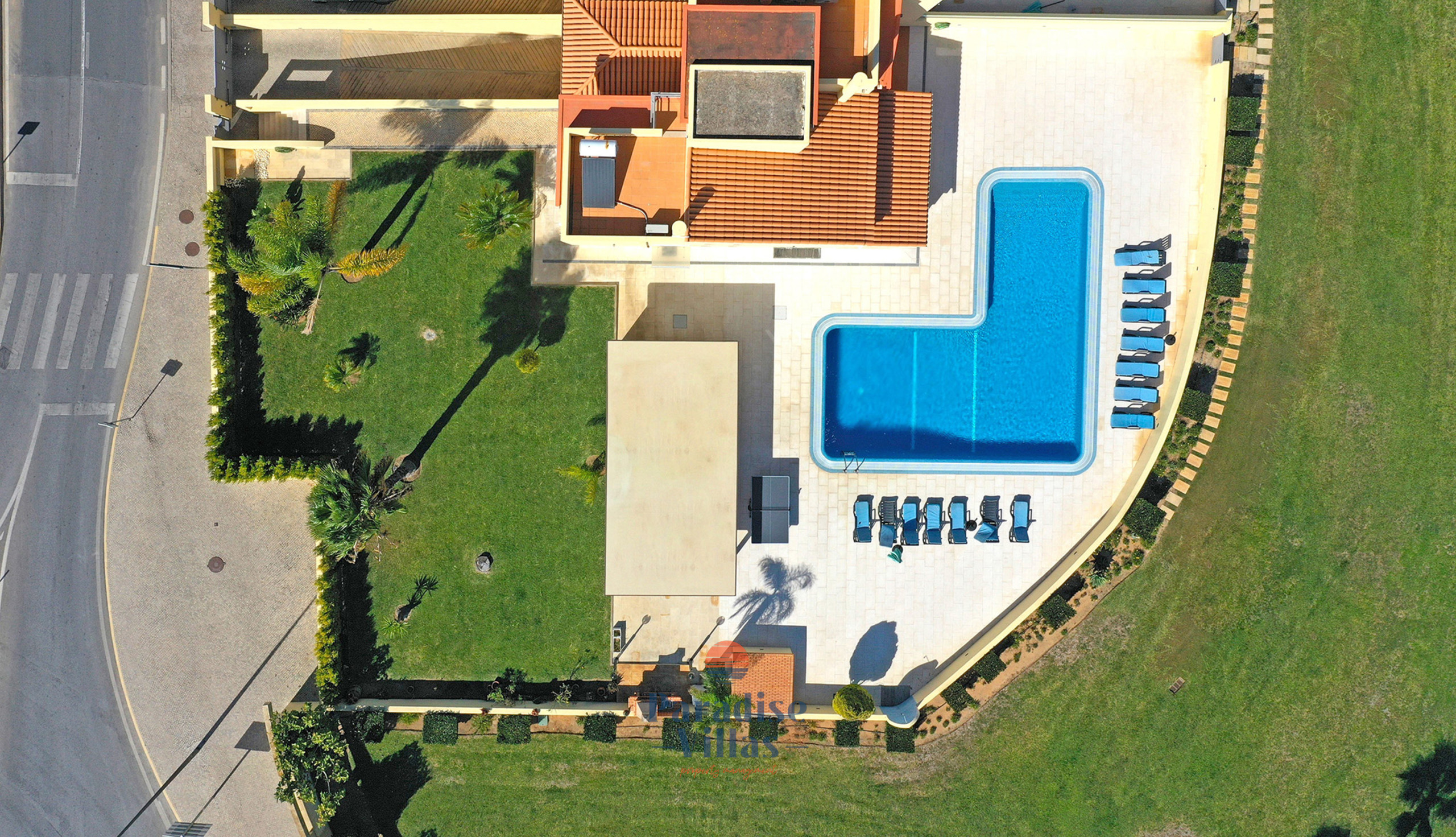 Lá fora existe uma grande piscina privada (Aquecimento da piscina como extra opcional), rodeada por um jardim de relvado com espreguiçadeiras e um churrasqueiro tradicional de alvenaria e zona de estar que acomodará confortavelmente todos os que ficarem na villa.