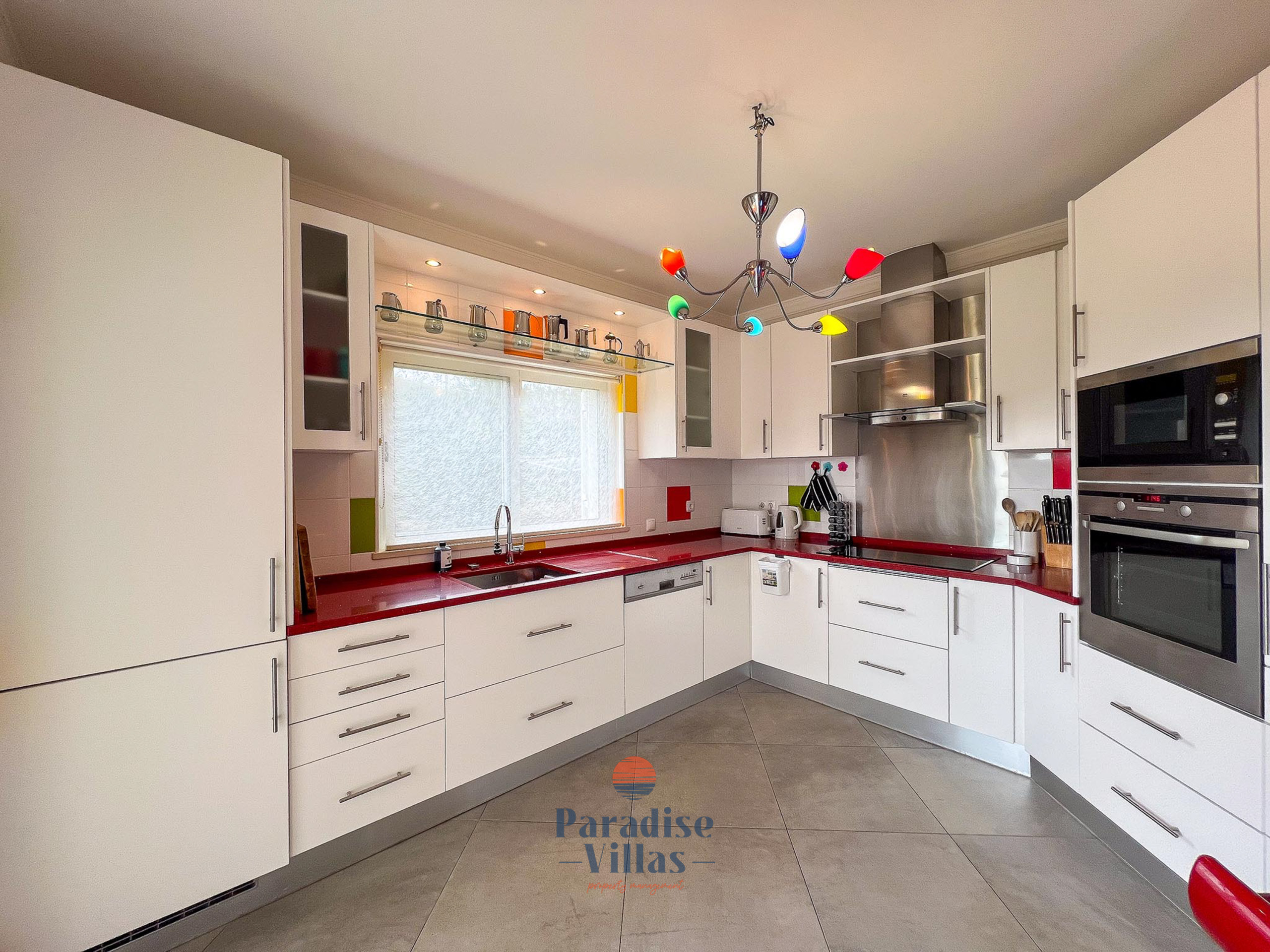 The fully equipped kitchen is fitted with modern appliances and all the utensils you need to prepare delicious home-cooked meals.