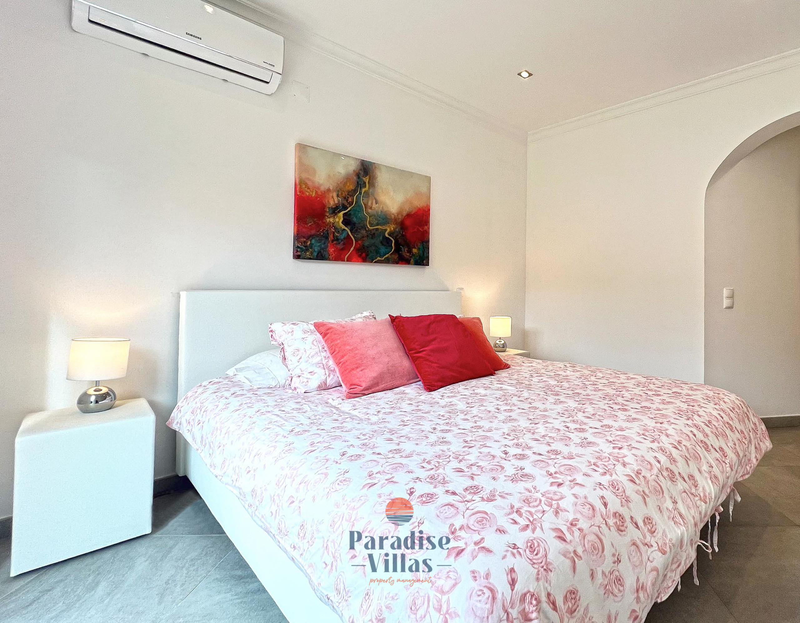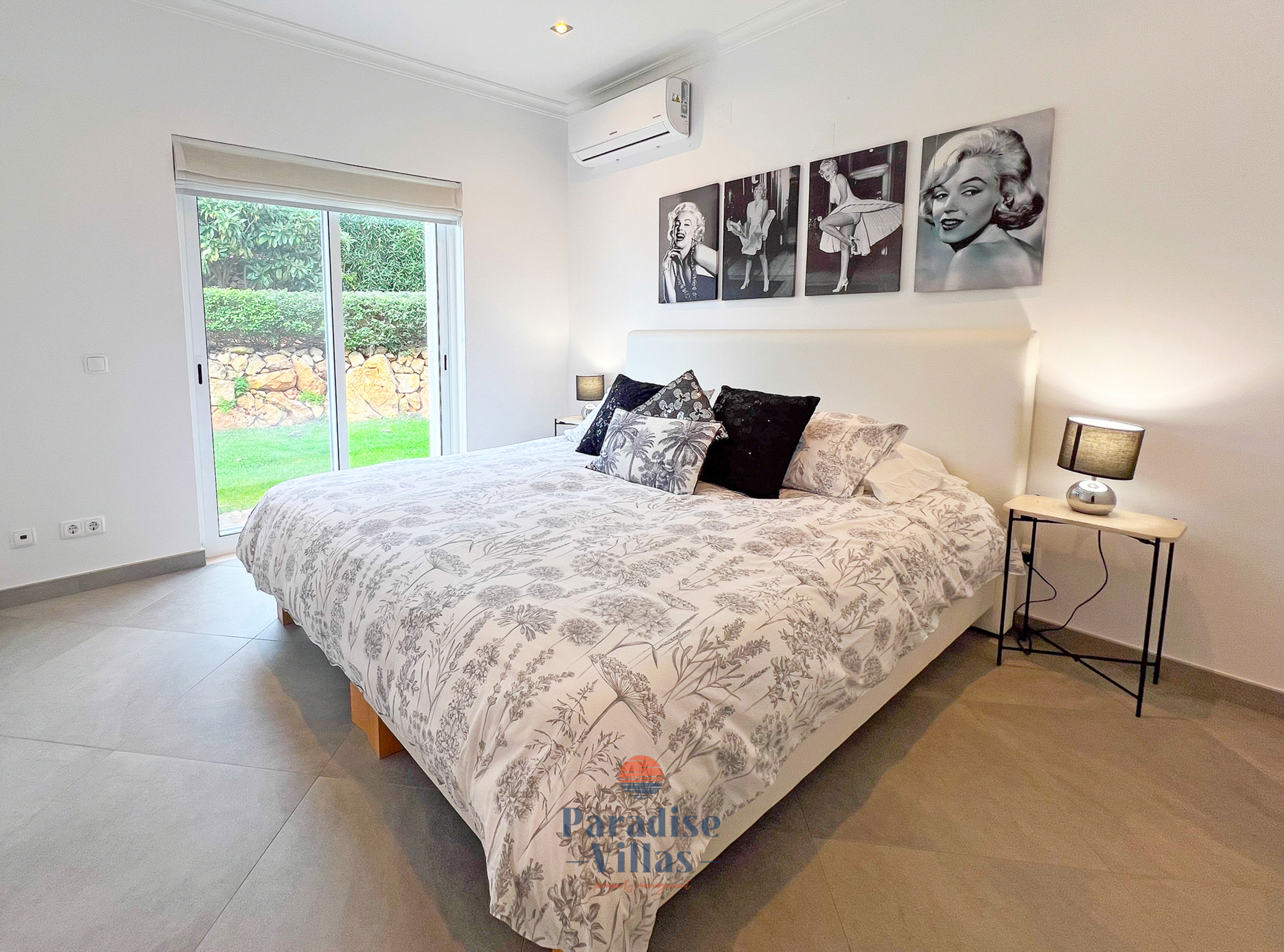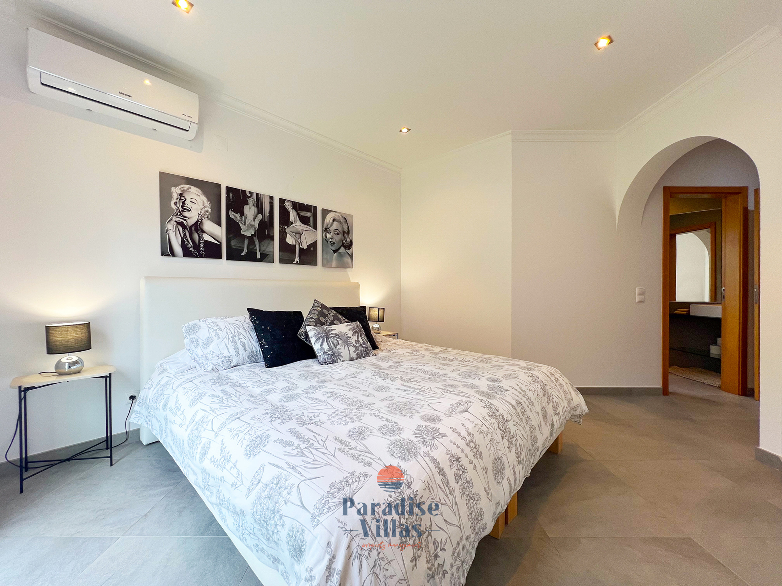 Beautifully decorated throughout, the villa features four spacious bedrooms: three with double beds and one with two single beds, all with their own en-suite bathrooms.