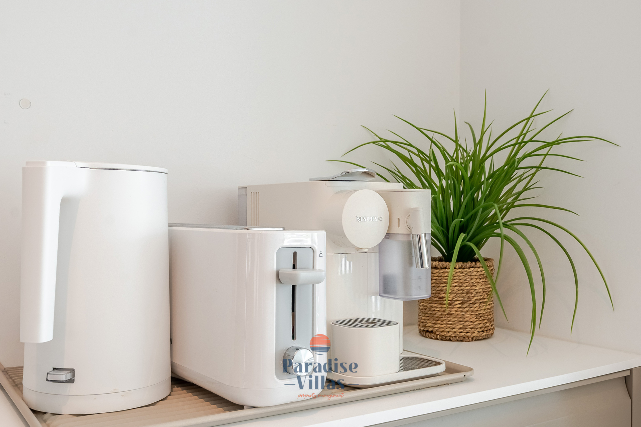 The villa offers underfloor heating and cooling, high-speed Wi-Fi, a smart TV with international channels, and private parking.